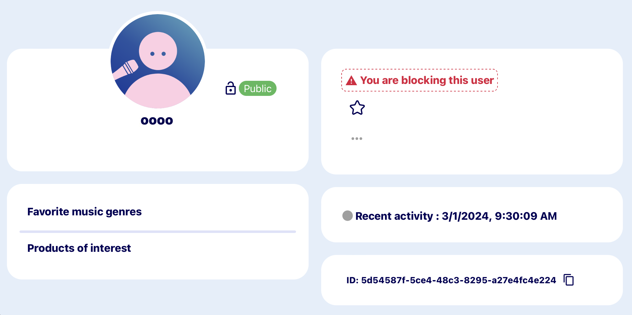 Displays the list of users you have blocked. You can also unblock users and specify IDs to block users here.
