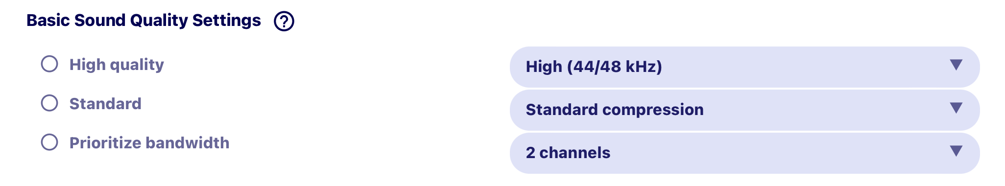 ② Even if you contract with the same provider and the same service, connection status varies depending on the area and time of use, so it is difficult to define "the correct line setup". If the line is congested, it may happen that you cannot connect to the room, or there will be greater latency.